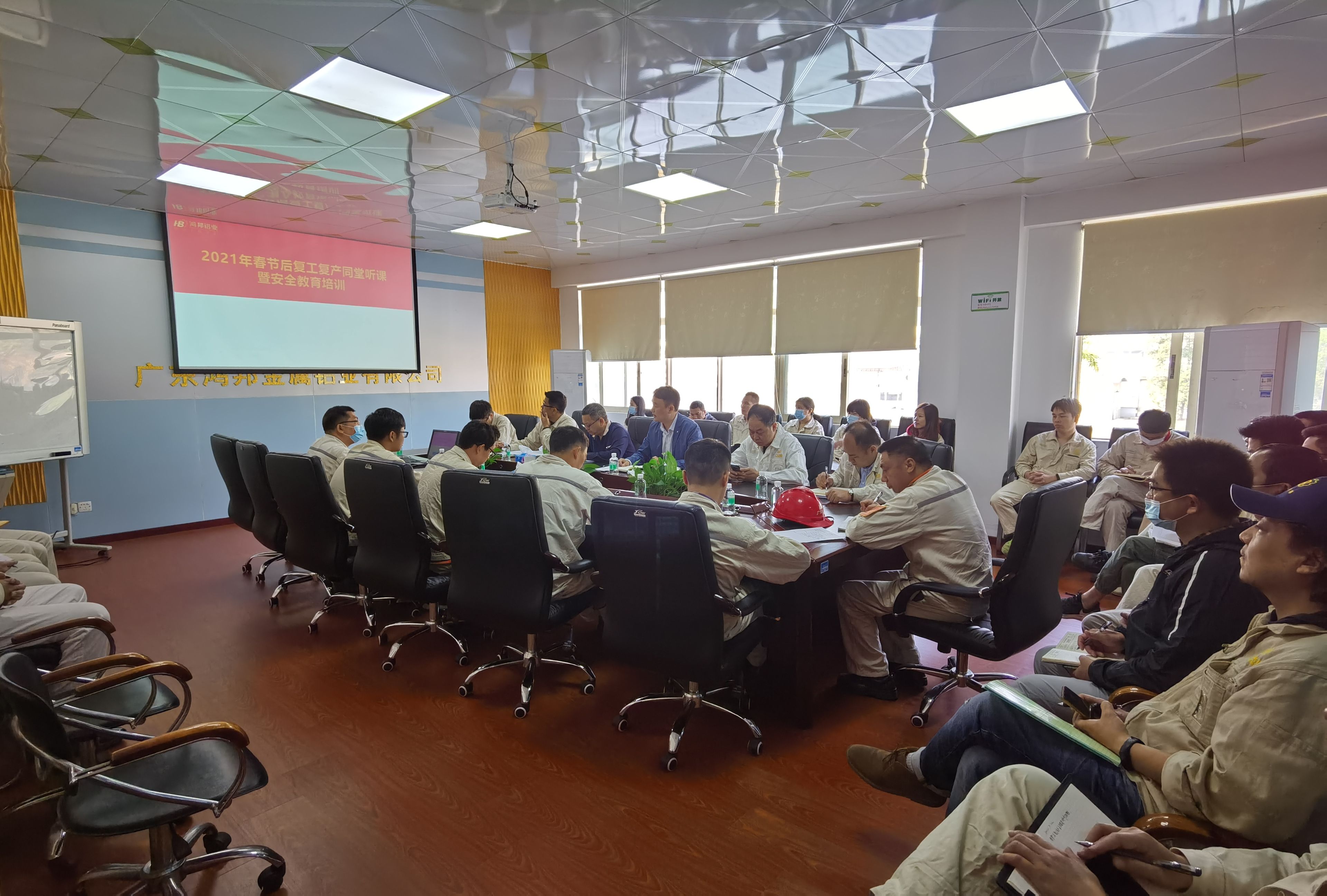 2021年2月22日上午,廣東鴻邦金屬鋁業有限公司在行政辦公2樓會議室開展了節后復工復產“同堂聽課”安全教育活動,公司EHS管理第一責任人、董事長文歡,常務副總經理范衛忠,EHS管理直接責任人楊鎮江,工會主席兼財務總監何景南,EHS管理機構成員和各部門責任人、安全生產管理人員及部門職能部門人員參加了本次活動,活動由EHS管理第一責任人、董事長文歡主持。 主持人傳達了廣州工業投資控股集團有限公司關于節后復工會議的精神和增城區安委會辦公室關于節后復工復產文件要…