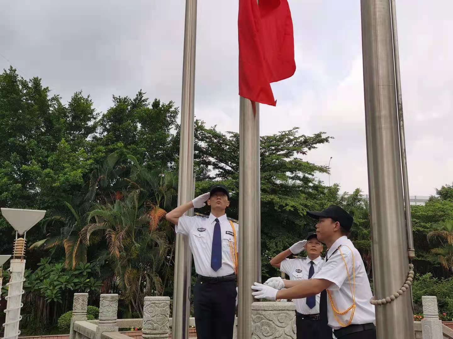 為慶祝中國共產黨建黨100周年,增強員工對在黨的領導下的偉大的祖國榮譽感和自豪感,2021年7月1日 上午7:50時,園區企業聯合組織舉行了“百年風華正美好、奮楫揚帆譜新啟篇”升旗儀式。全體參與活動的員工身著整齊的工裝、精神抖擻參加升旗活動。護旗手護衛著五星紅旗,闊步走向旗臺,國旗在激昴的國歌伴奏聲中徐徐升起,在場員工高唱國歌。